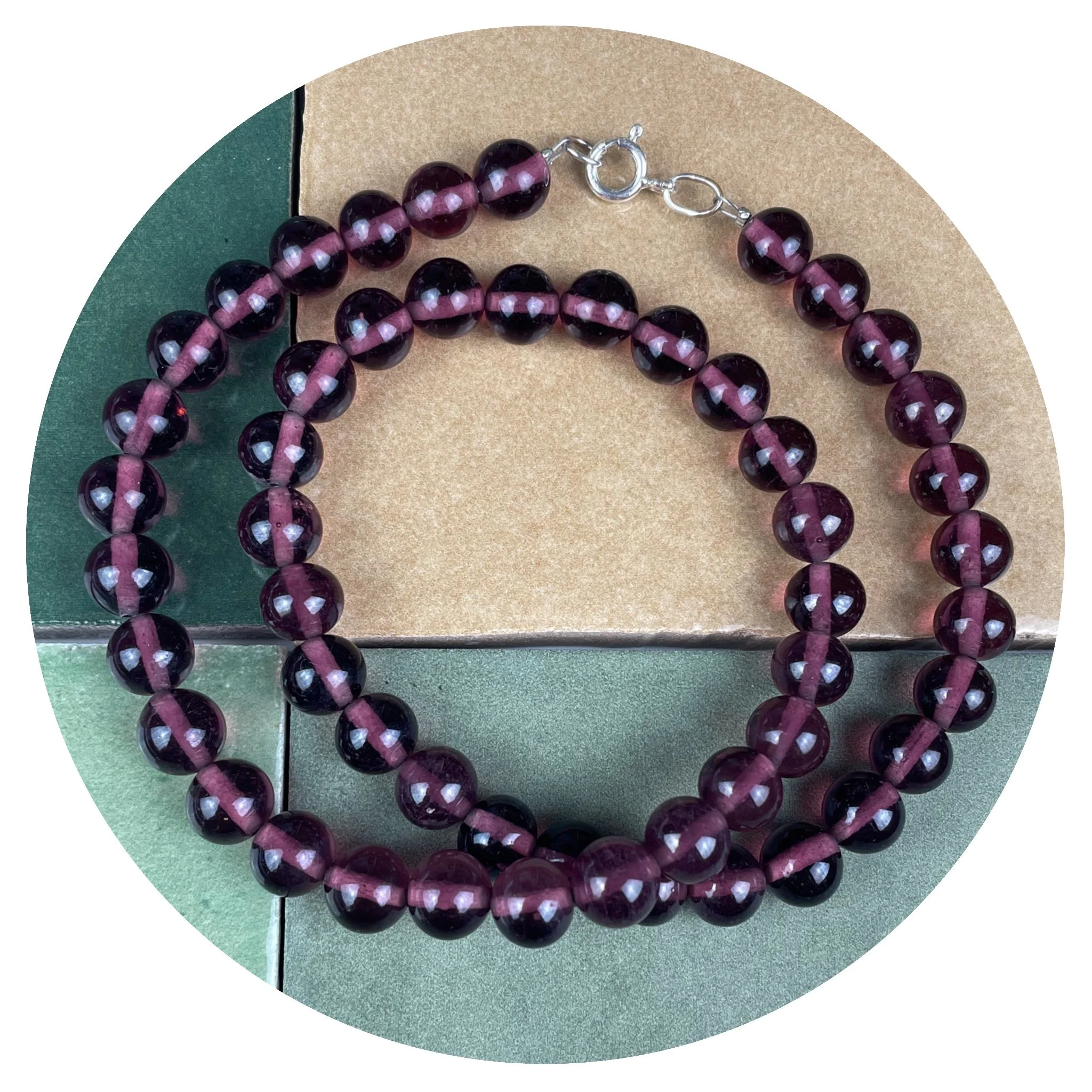 This beautiful beaded necklace features genuine 1950s Japanese glass beads, paired with sterling silver findings. If you’d like a customised length, feel free to get in touch via email or Instagram. I can shorten it or extend it by up to 5cm using my remaining vintage beads.