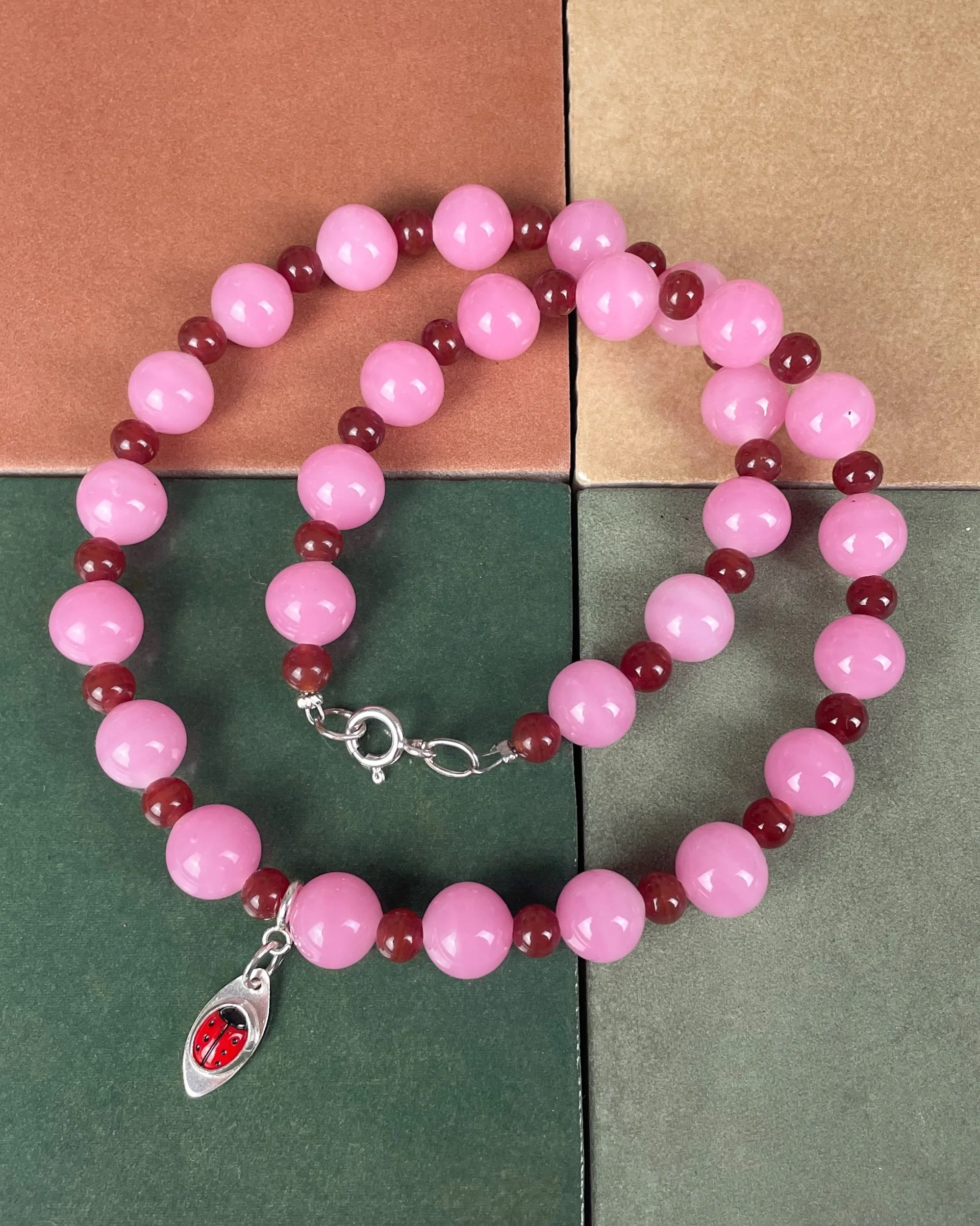 This beautiful beaded necklace features genuine 1950s Japanese glass beads, paired with sterling silver findings. If you’d like a customised length, feel free to get in touch via email or Instagram. I can shorten it or extend it by up to 5cm using my remaining vintage beads.