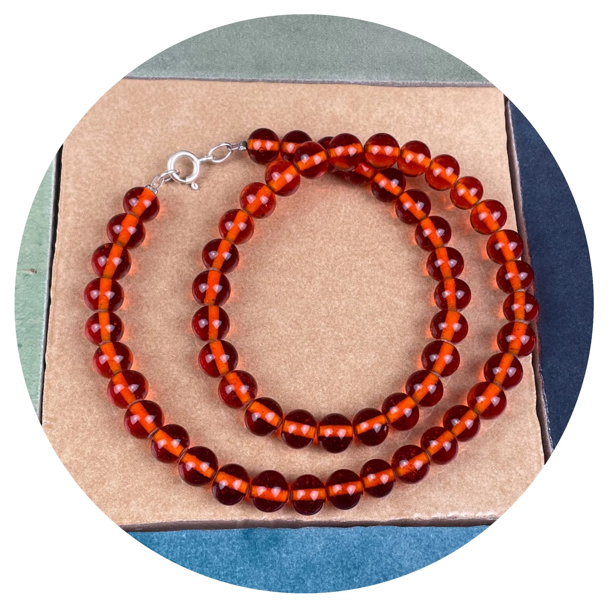 This beautiful beaded necklace features genuine 1950s Japanese glass beads, paired with sterling silver findings. If you’d like a customised length, feel free to get in touch via email or Instagram. I can shorten it or extend it by up to 5cm using my remaining vintage beads.