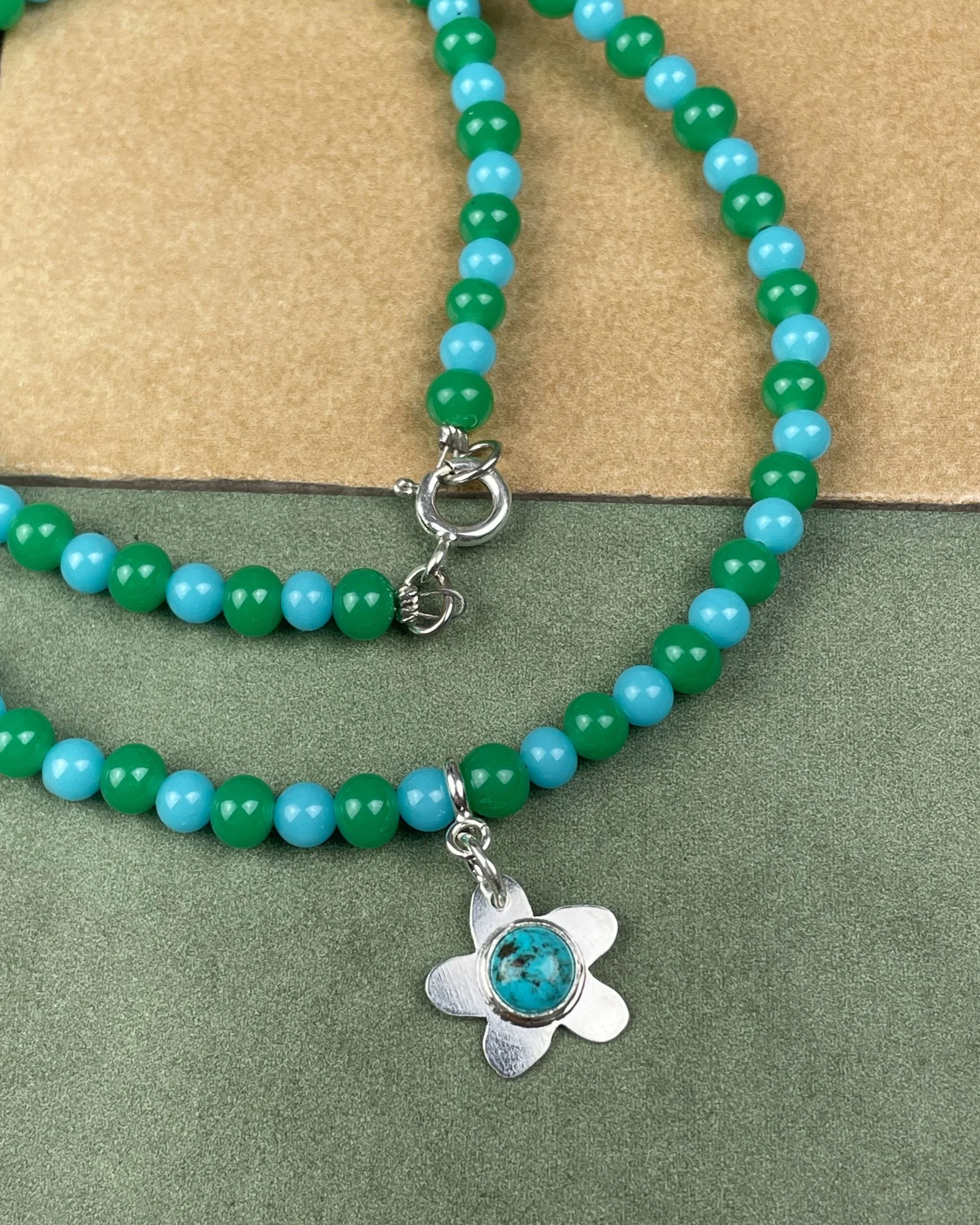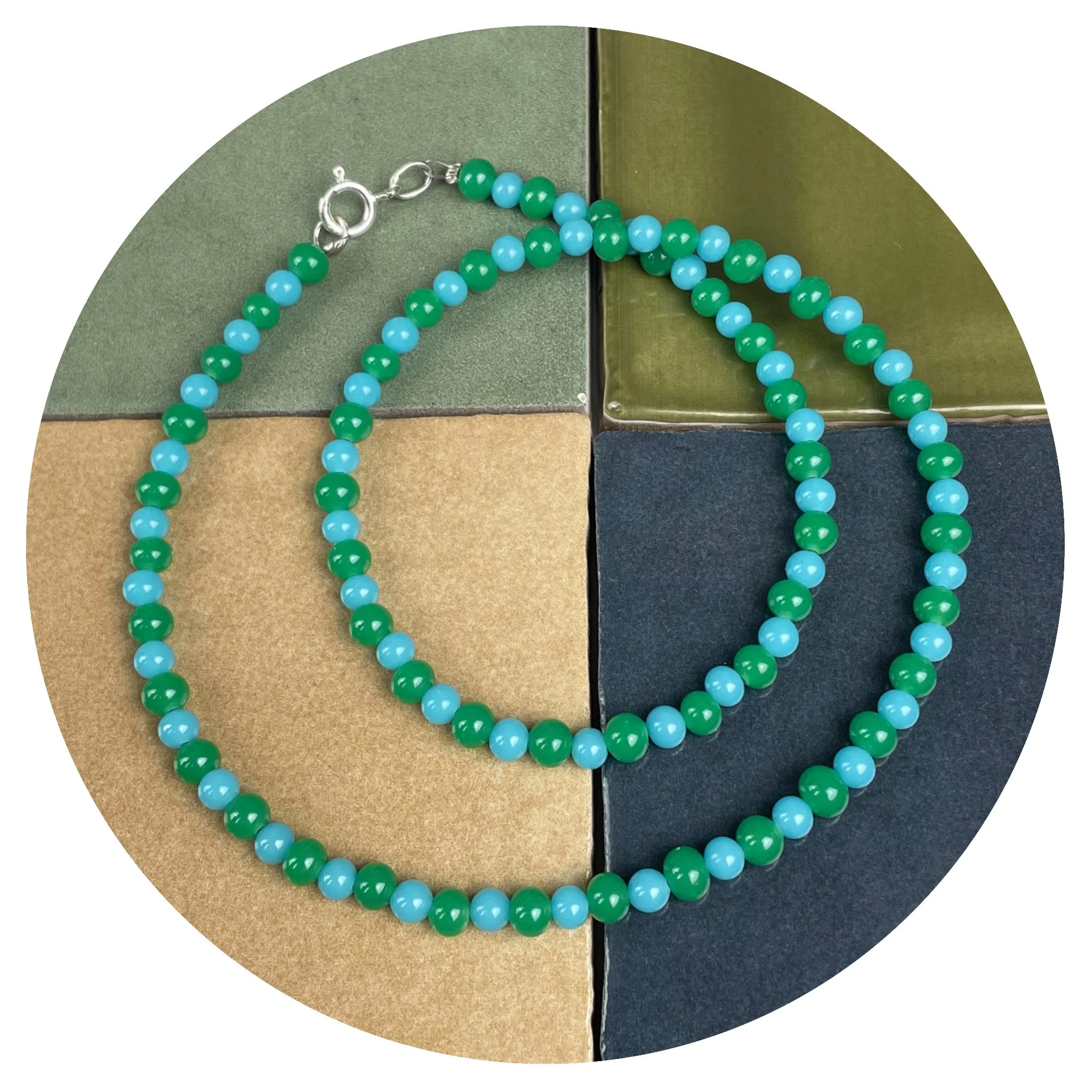 This beautiful beaded necklace features genuine 1950s Japanese glass beads, paired with sterling silver findings. If you’d like a customised length, feel free to get in touch via email or Instagram. I can shorten it or extend it by up to 5cm using my remaining vintage beads.