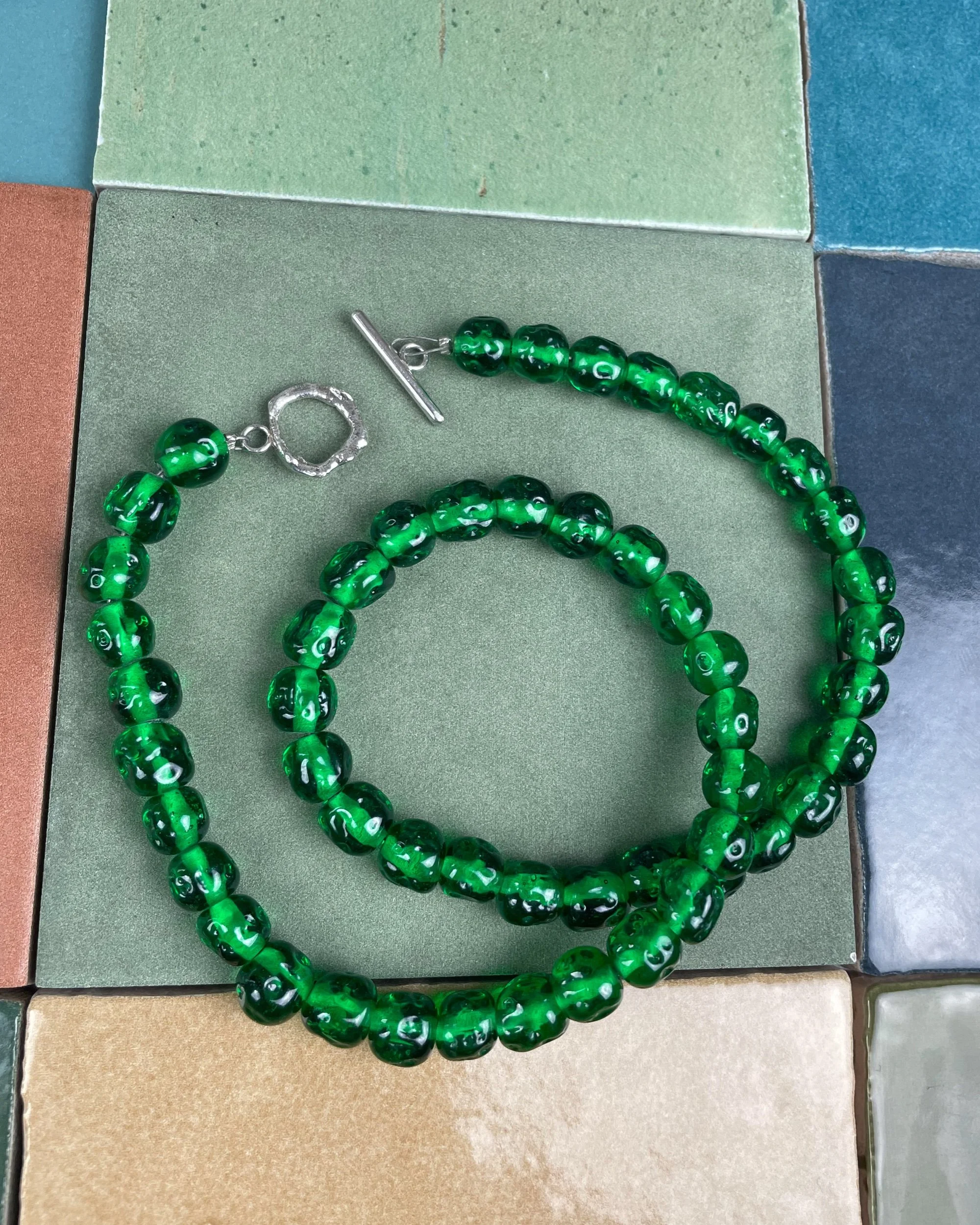 This beautiful beaded necklace features genuine 1950s Japanese glass beads, paired with melted sterling silver toggle. If you’d like a customised length, feel free to get in touch via email or Instagram. I can shorten it or extend it by up to 5cm using my remaining vintage beads.