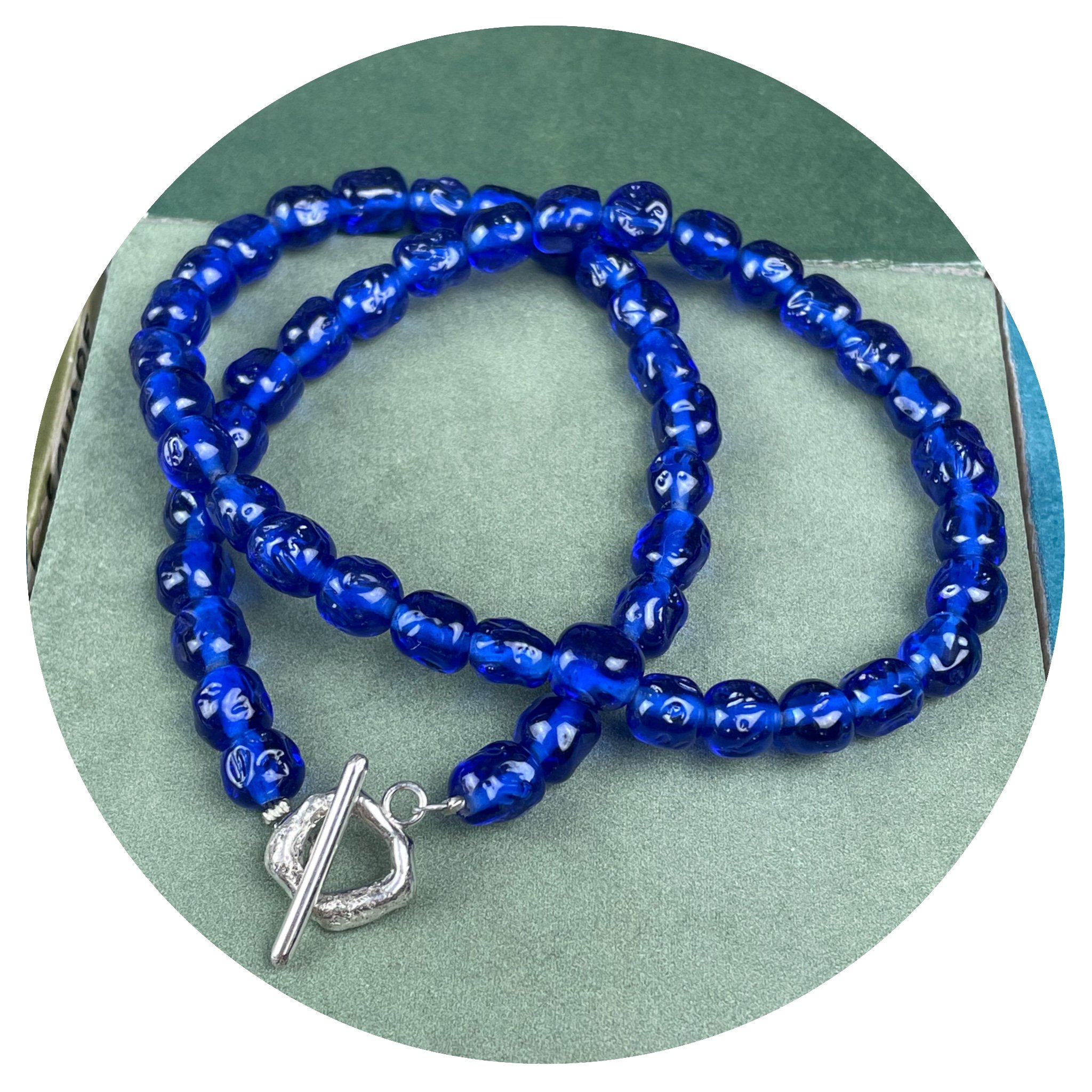 This beautiful beaded necklace features genuine 1950s Japanese glass beads, paired with melted sterling silver toggle. If you’d like a customised length, feel free to get in touch via email or Instagram. I can shorten it or extend it by up to 5cm using my remaining vintage beads.