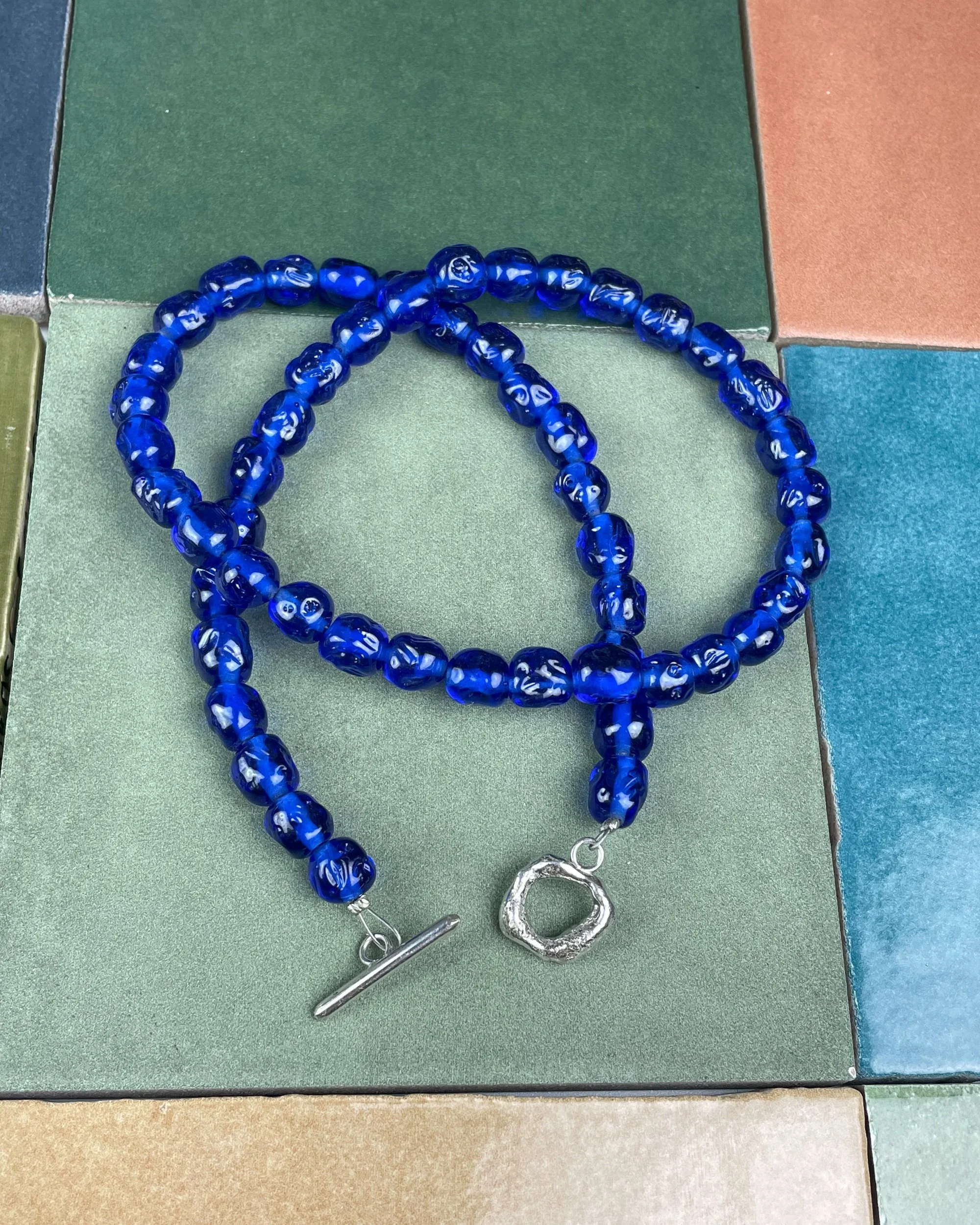 Vintage Glass Bead Toggle Necklace - Ocean Blue