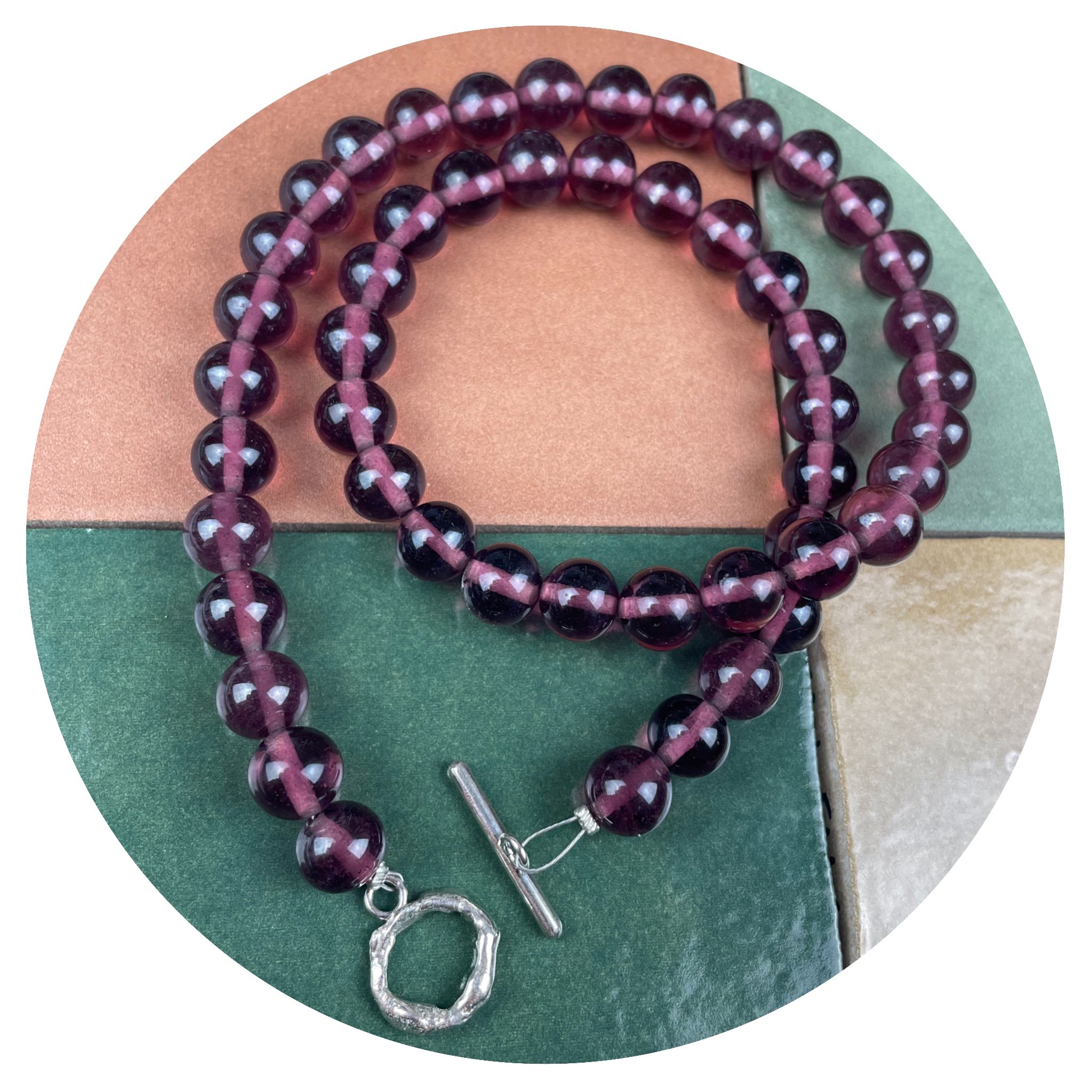This beautiful beaded necklace features genuine 1950s Japanese glass beads, paired with melted sterling silver toggle. If you’d like a customised length, feel free to get in touch via email or Instagram. I can shorten it or extend it by up to 5cm using my remaining vintage beads.