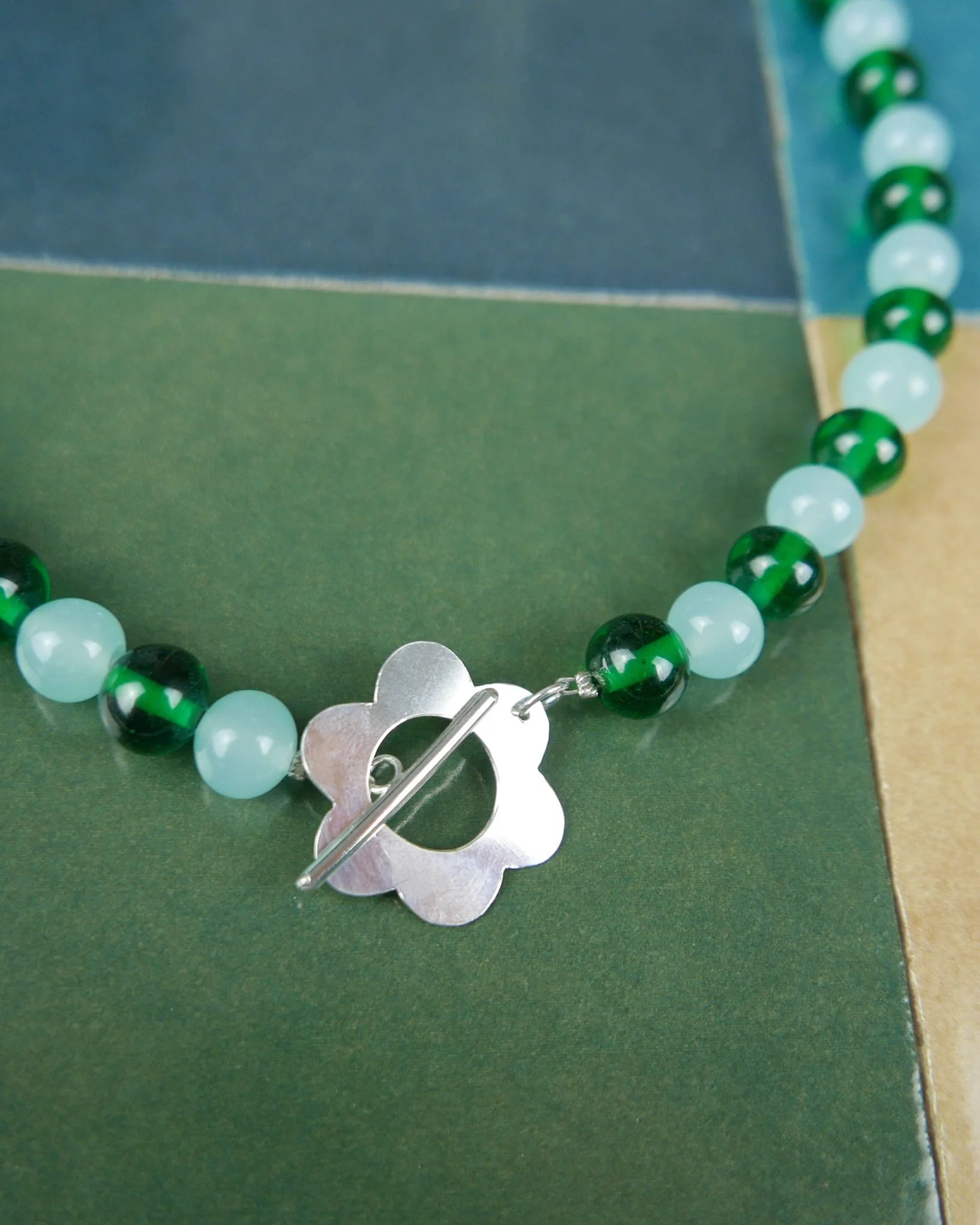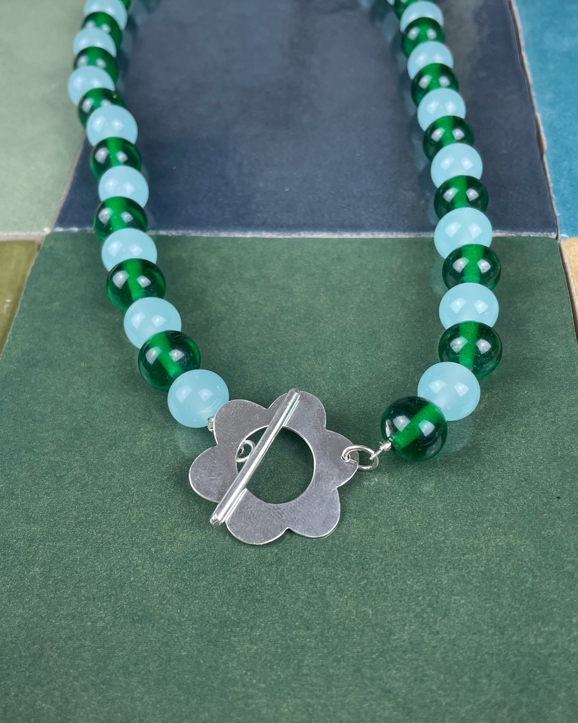 Daisy Toggle Vintage Glass Bead Necklace - Verdant Sky