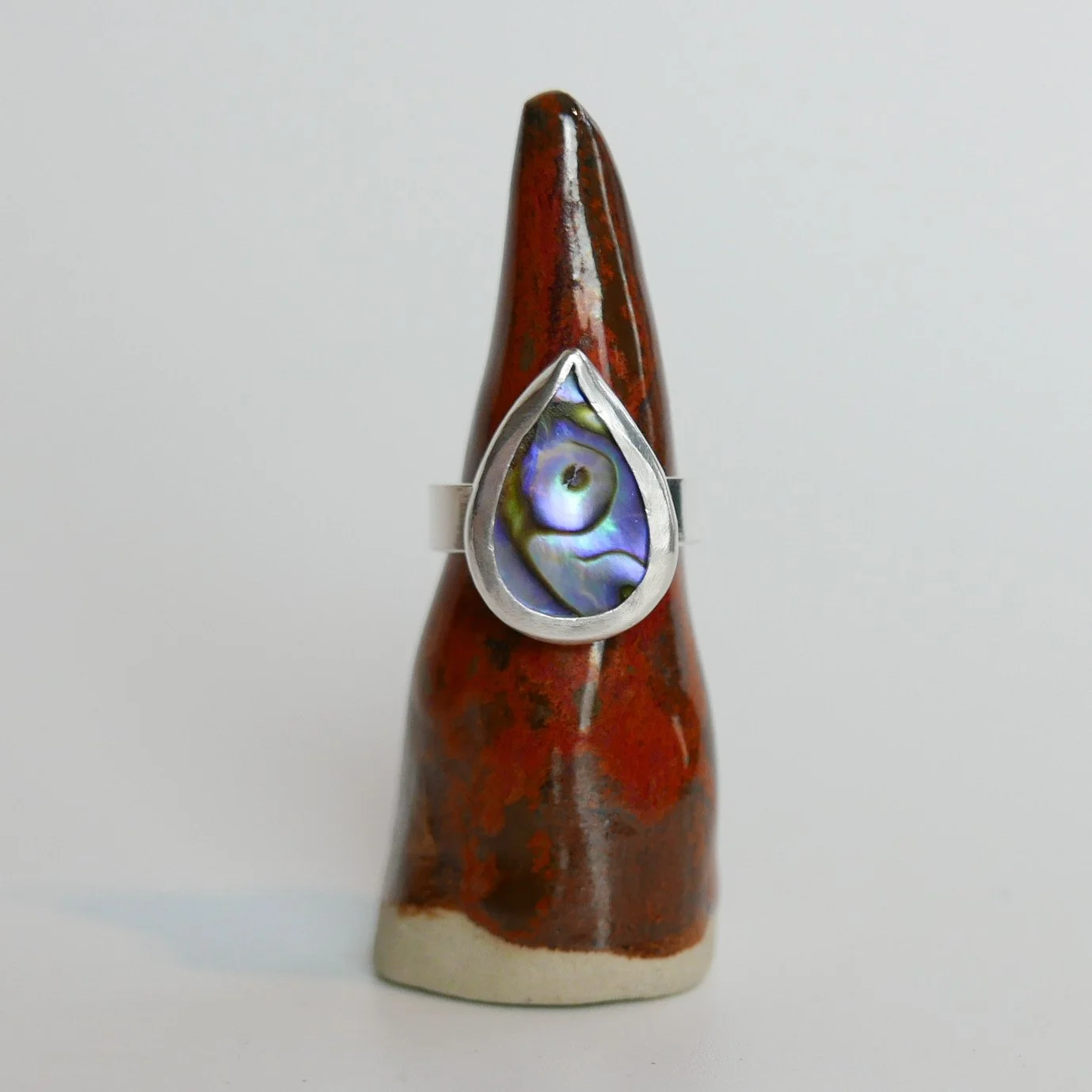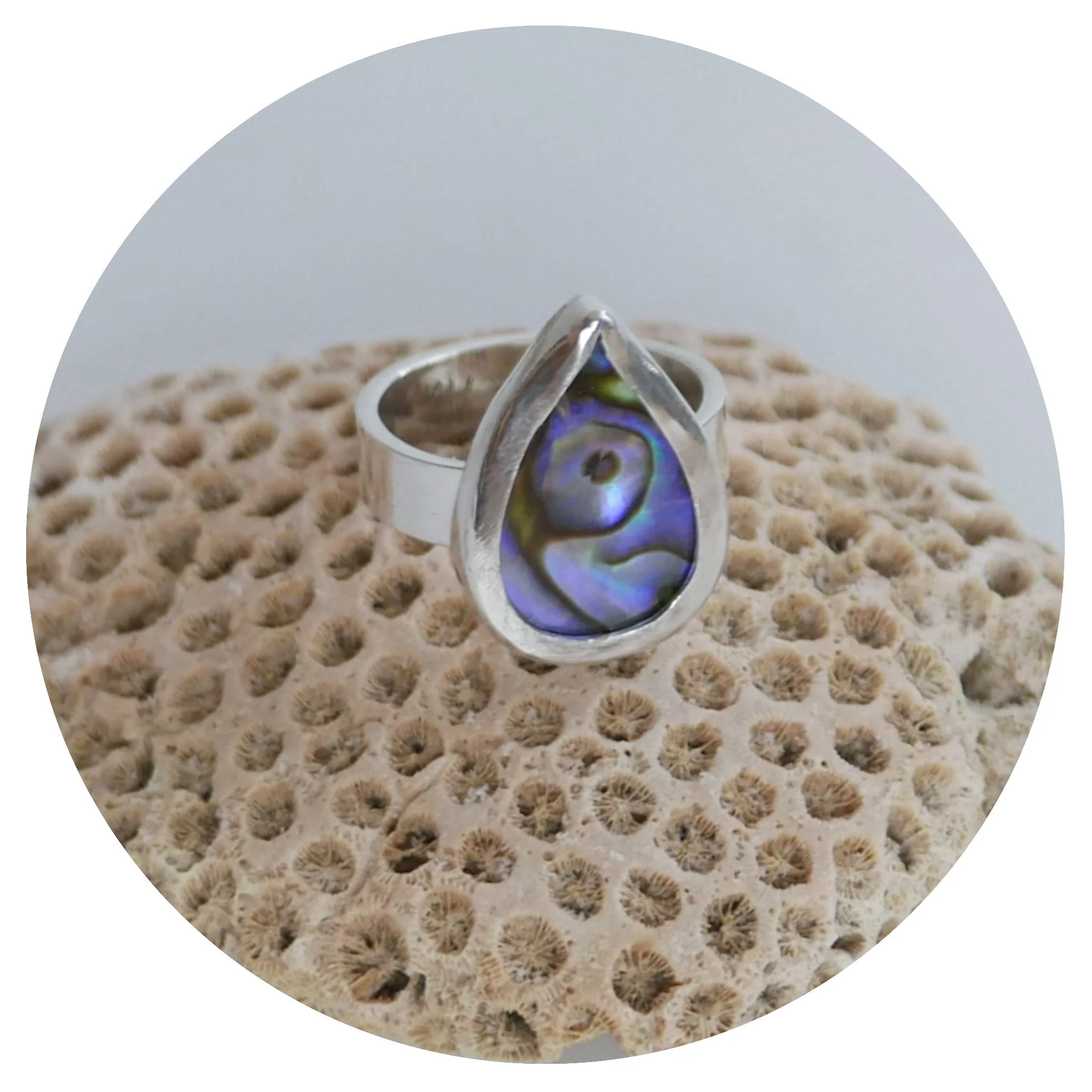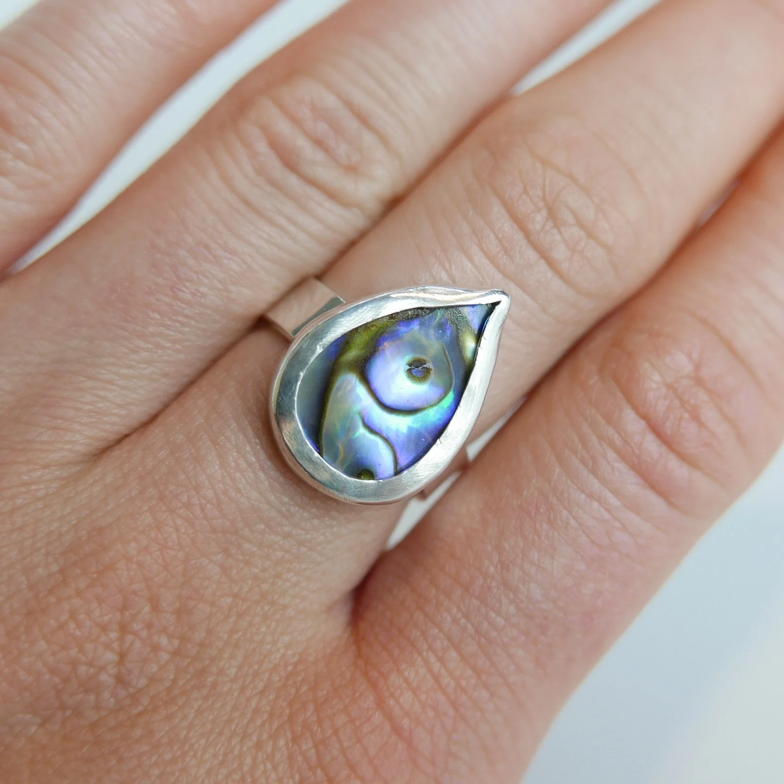 This listing is for a teardrop ring featuring a natural Abalone Paua Shell.