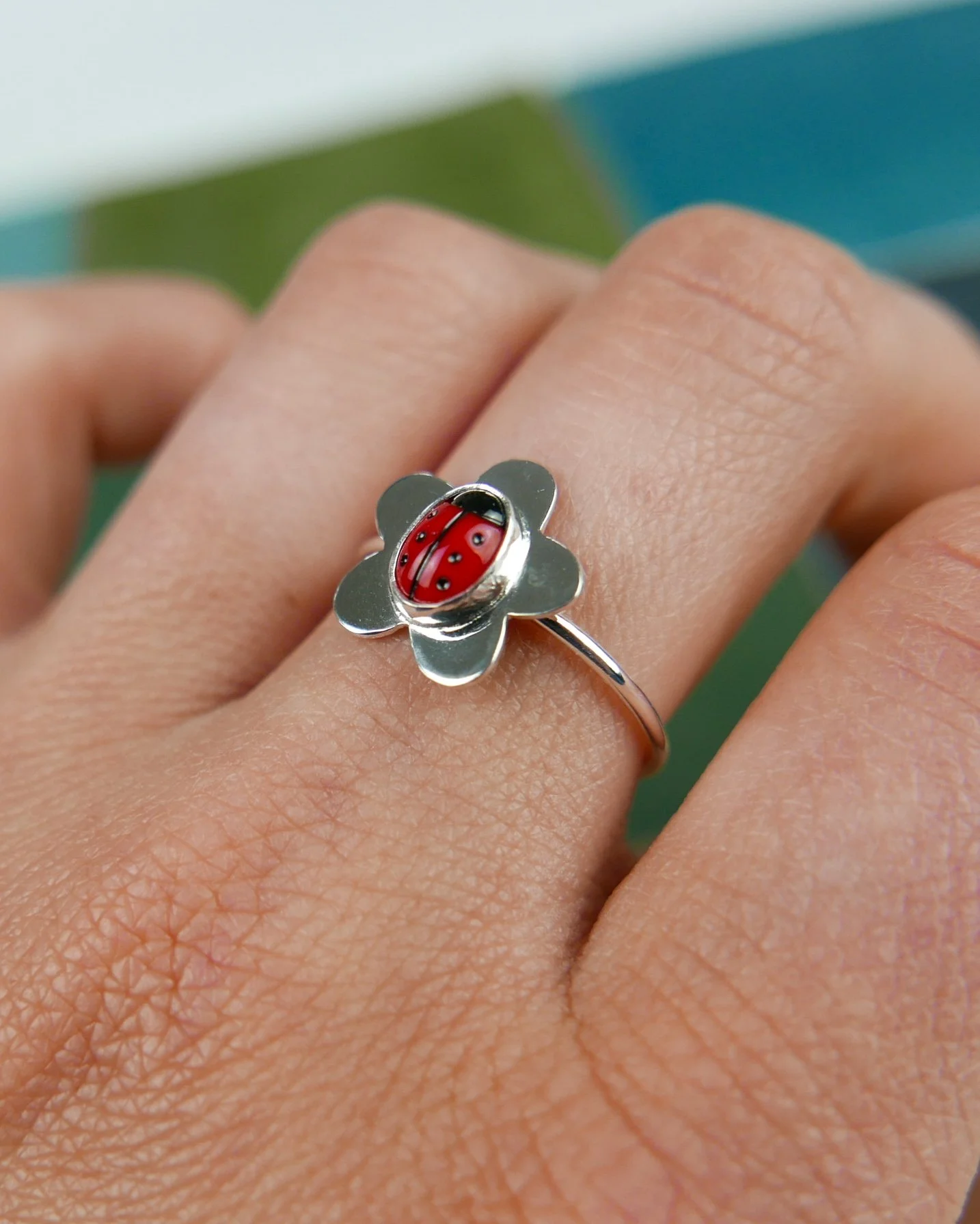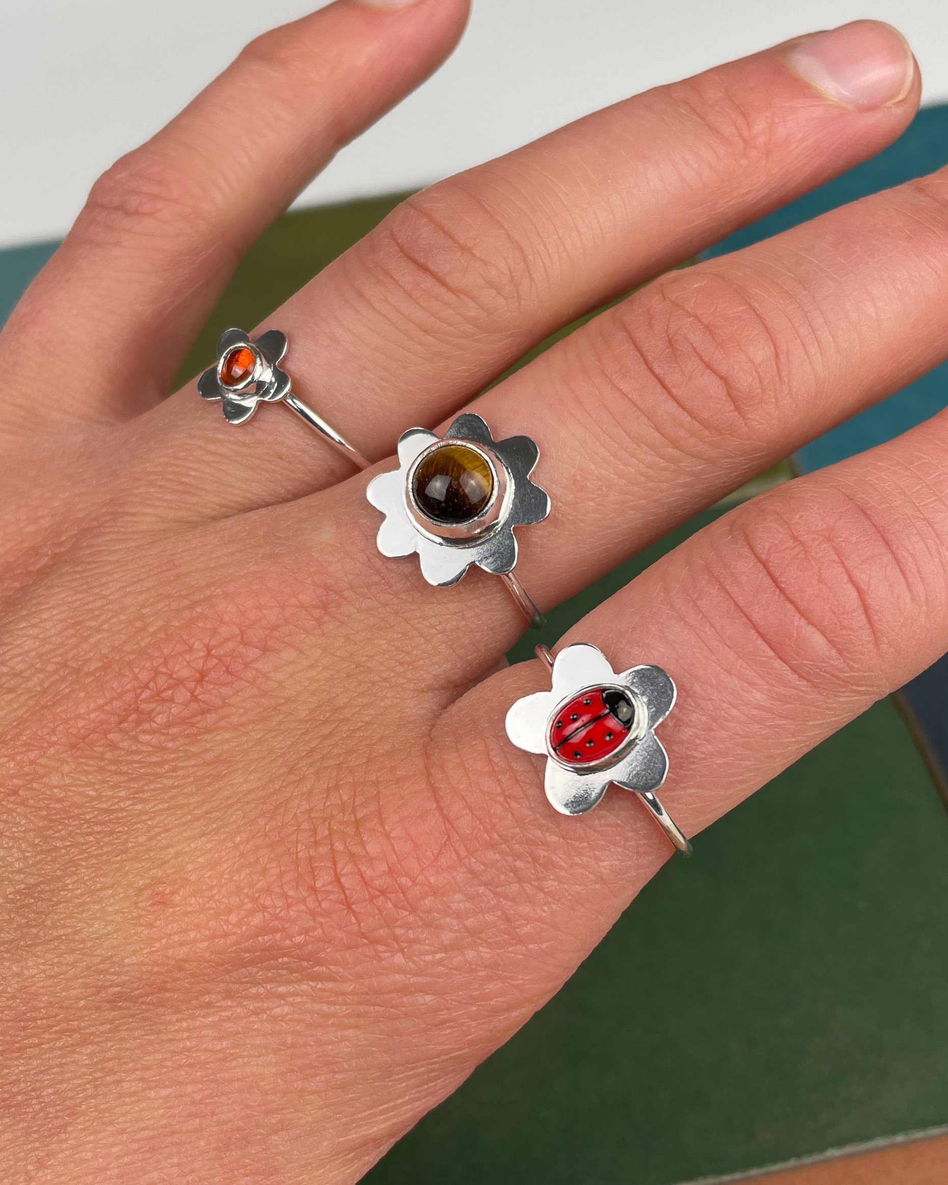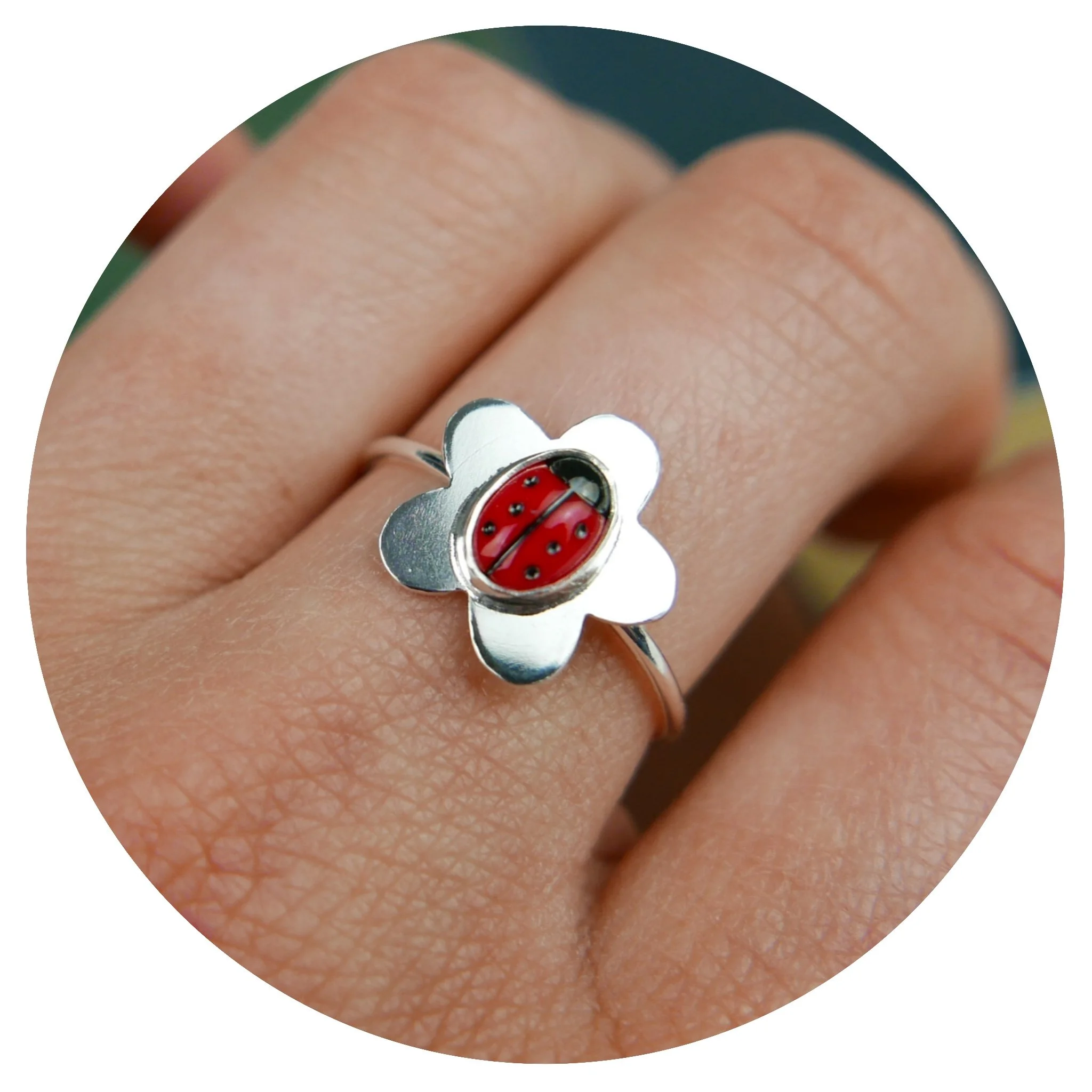 This listing is for a ladybird and daisy ring.